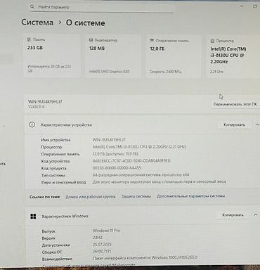 - Процессор: Intel Core i3‑8130U, 2.20 ГГц (2.21 ГГц).