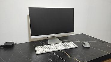 - Комплектация на фото: моноблок на подставке, проводной/беспроводной клавиатурный комплект (клавиатура и мышь), блок питания.
