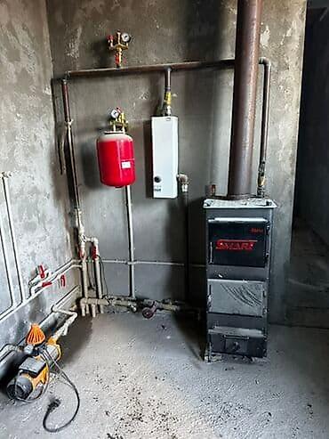 - Монтаж котельной: твердотопливные/электрические/газовые котлы, расширительные баки, группы безопасности, коллекторы, насосы.