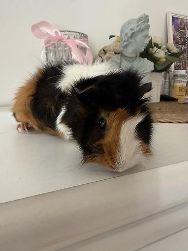 Морская свинка розетка , триколор (черный/белый/рыжий), короткошерстная. Компактная, с аккуратными ушками и выразительными темными глазами. Окрас пёстрый: на мордочке Милая, контактная, с любопытн...