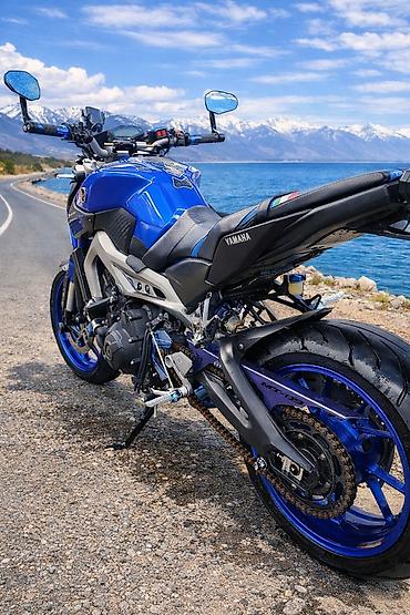 Yamaha MT‑09, синий/черный, дорожный нейкед. Установлена новые ведущая и ведомая звёзды. новая фирменная цепь.