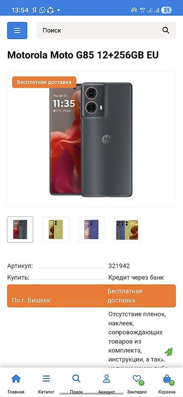 В комплекте — фирменная коробка Motorola с пломбами. Модель: moto g85 5G. Цвет и объём памяти зависят от версии, см. маркировку на коробке.