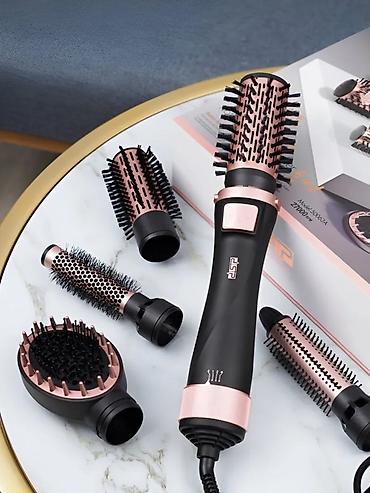 Многофункциональный стайлер с вращающейся насадкой для быстрой сушки и укладки. Комбинирует фен и щётки-насадки, позволяет создавать объём, выпрямлять или подкручивать волосы, оформлять челку и прикорневую зону.
