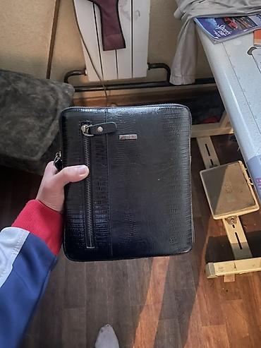 Мужская сумка через плечо BUTUN - Материал: натуральная кожа с тиснением под рептилию (черный цвет, полуглянцевая фактура). Красный ремешок! - Ремень: широкий текстильный, регулируемый, с фирменно...