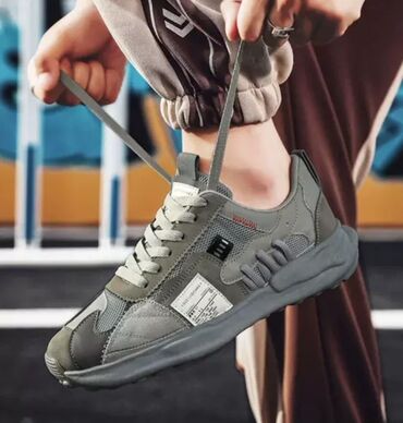 Кроссовки мужские, повседневные/спортивные, серо‑графитовой гаммы.