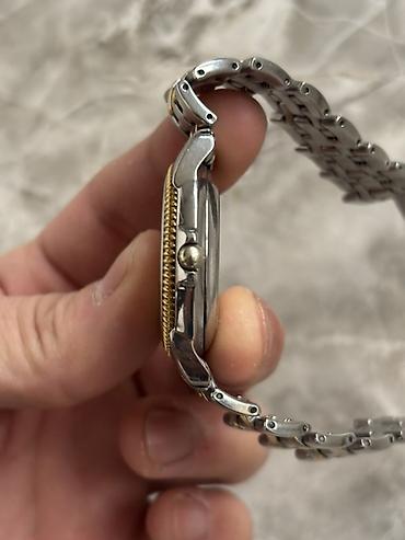 - Двухцветный стальной браслет (сталь/золочёные вставки), раскладная застёжка.