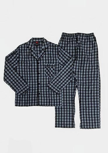 Мужские домашние пижамные комплекты с длинным рукавом. Модели: - 6016 (размеры: M, L, XL, 2XL) — кофта на пуговицах цвета индиго, брюки в синюю клетку. - 6018 (размеры: M, L, XL, 2XL) — кофта антр...