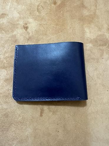 Классическое мужское портмоне-билфолд из натуральной кожи, цвет — темно-синий.
