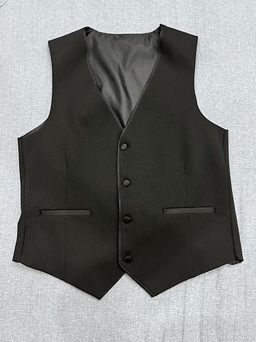 - Жилет на 5 пуговиц с V-образным вырезом, атласной окантовкой бортов и двумя прорезными карманами; спинка на подкладке.