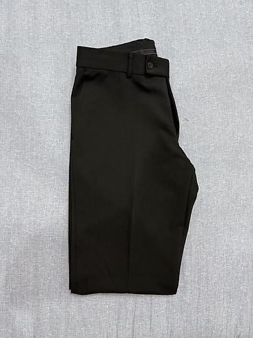 - Брюки прямого кроя с притачным поясом, шлевками под ремень, боковыми карманами и застежкой на пуговицу и молнию.