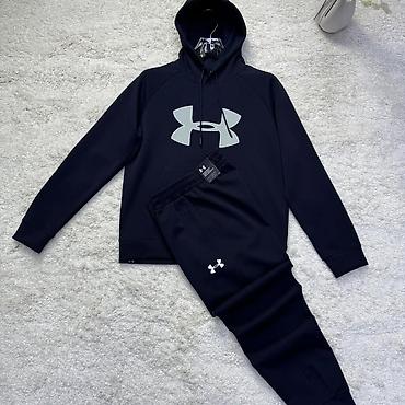 - Темно-синий комплект с логотипом Under Armour на худи и на брюках.