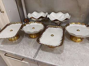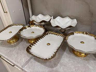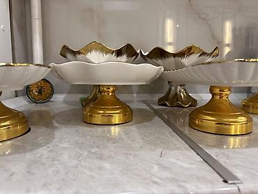 Набор праздничной сервировки и декора для стола. 1) Фруктовница/этажерка на 3 секции - Металлическая основа с золотистым покрытием, резные цветочные элементы - Прозрачные стеклянные тарелочки, фиг...