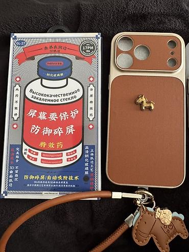 - Защитное стекло: упаковка с надписью «Высококачественное закалённое стекло», 3D‑скруглённые края, технология автоматической адгезии, высокая прозрачность. Маркировка на коробке: 17PM (для линейки iPhone Pro Max).