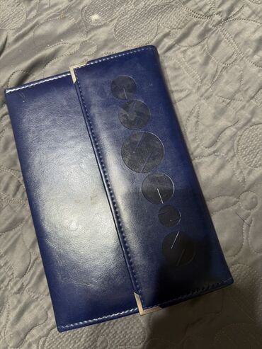 - Портативный кейс из синего материала с магнитной/клапанной крышкой и защитными металлическими уголками.