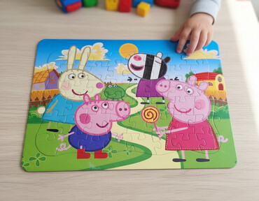 - Предположительно 24–35 деталей на каждую картинку (средний размер фрагментов, удобные для детских рук).