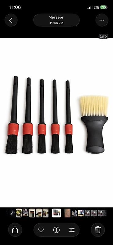- 5 круглых детейлинг-кистей разного диаметра с пластиковыми ручками и мягким ворсом для деликатных поверхностей.