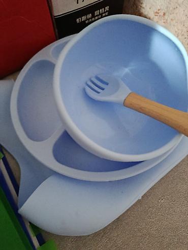 - Ложка с бамбуковой ручкой и силиконовым наконечником