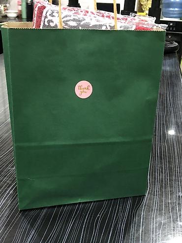 - Подарочный бумажный пакет тёмно‑зелёного цвета с ручками.