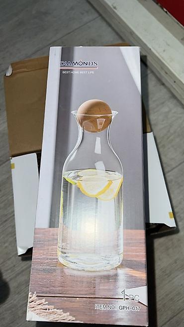 - Прозрачный стеклянный графин классической формы с расширенным горлышком.