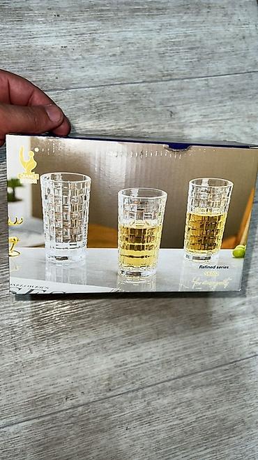 - Набор стеклянных стаканов с рельефным «клеточным» узором.