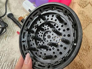 - Насадка-диффузор (черная) — для придания объема при сушке феном.
