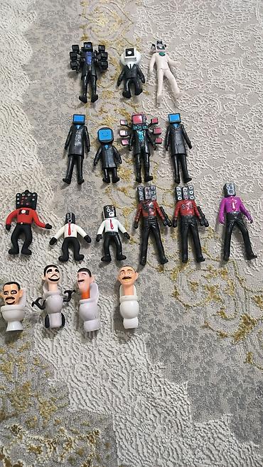 - Четыре фигурки‑игрушки «туалет с головой» с разными лицами.