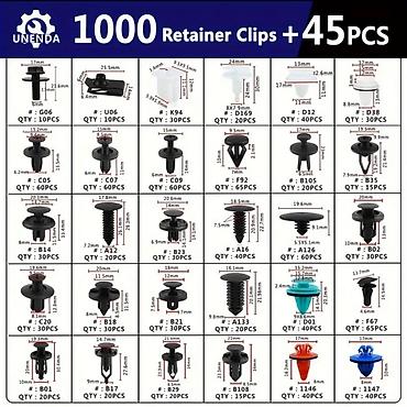 Набор универсальных автомобильных клипс и крепежа — 1000 шт + 45