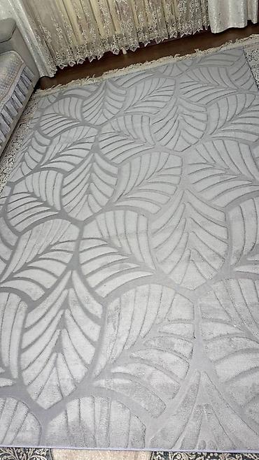 Размер 2 метра Ковер прямоугольный, светло‑серый с плавными переходами оттенков серого и бежевого. Рельефный орнамент по всему полю и бордюру: фактурные вензеля и завитки из более высокого, мягкого...