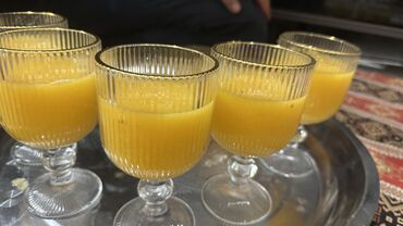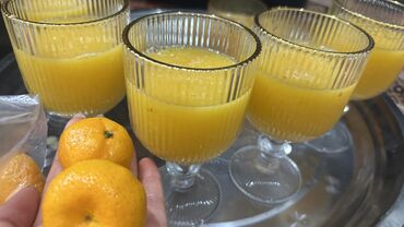 - Цитрусовые свежевыжатые (на фото — сок из мандаринов/апельсинов) с насыщенным вкусом и мякотью.
