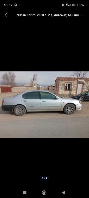 Nissan Cefiro, 2000 год выпуска. Седан серебристого цвета.