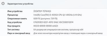 - Процессор: Intel Core i5-1035G1 (4 ядра, до 3.6 ГГц в турбо; на стикере Intel Core i5 10-го поколения)
