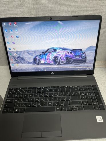 HP 250 G8 Notebook PC — офисный/учебный ноутбук с русской раскладкой и блоком цифр. Цвет: темно‑серый, текстурированная крышка. В комплекте — оригинальное зарядное устройство.
