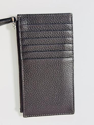 Компактные кожаные кардхолдеры KARYA - Формат: тонкий горизонтальный кардхолдер с верхним отделением на молнии. - Внешняя организация: 4–6 слотов для карт с каждой стороны (в зависимости от модели...