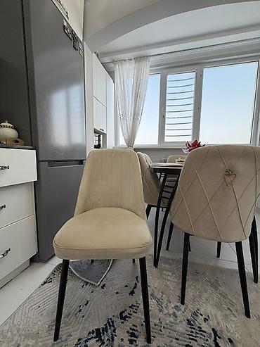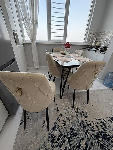 Представляем обеденный стол с глянцевой столешницей, имитирующей мрамор, и шестью мягкими стульями. Стол имеет прямоугольную форму и устойчивые черные ножки, что обеспечивает комфортное размещение до шести человек. Стулья выполнены в светлом нейтральном оттенке, имеют удобную спинку с декоративной прострочкой и черные ножки, гармонирующие со столом. Этот комплект идеально подойдет для создания уютной обеденной зоны на кухне или в столовой.