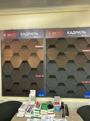 Гибкая черепица SHINGLAS (ТехноНИКОЛЬ) — образцы коллекций на стендах.