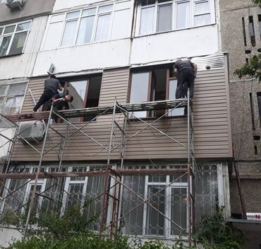 - Профессиональная обшивка фасадов балконов и лоджий виниловым сайдингом (серый, бежевый и др. оттенки).