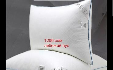 Также на фото: подушка «лебяжий пух» — 1200 сом. Мягкая, упругая, гипоаллергенное синтетическое наполнение с эффектом пуха, чехол с кантом.