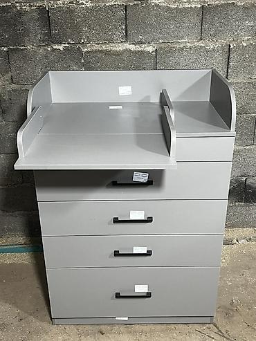 Компактный напольный шкаф с рабочей столешницей и бортиками. Характеристики: - Тип: тумба/шкаф для хранения - Конструкция: 2 распашные секции снизу + 2 выдвижных ящика сверху - Фасады: ровные, в б...