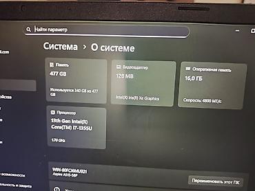 - Процессор Intel Core (наклейка Intel Core 12-го поколения), графика Intel Iris Xe.