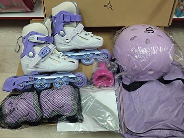 Оригинальные ролики фирмы SWAY, качественные материалы, плотные металлические рамы, гелевые светящиеся колёса с полным комплектом. Размеры регулируются S 28-32, M 32-36, L 37-40. Есть доставка по всему Кыргызстану💫