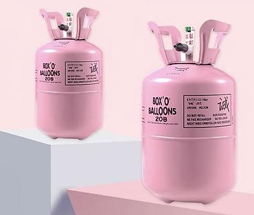 - Одноразовый стальной баллон розового цвета с вентилем и насадкой для шаров.