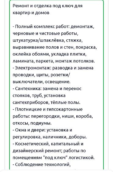 - Черновые и чистовые работы: от выравнивания оснований до финишной отделки и уборки.
