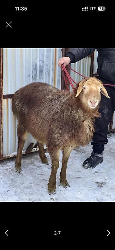 Предлагается овца для покупки, отличающаяся крепким телосложением и густой шерстью светло-коричневого оттенка. Животное имеет длинные, опущенные уши и короткий хвост, что характерно для многих поро...