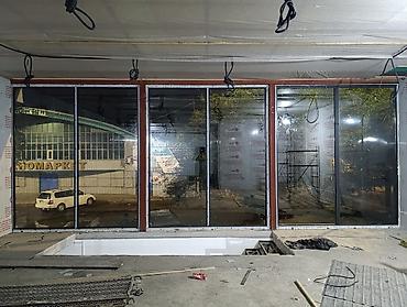 - Формат: витражное, от пола до потолка. Подходит для второго этажа, шоу‑рума, офиса, торгового павильона, кафе.