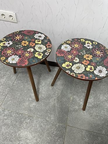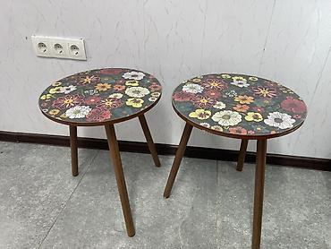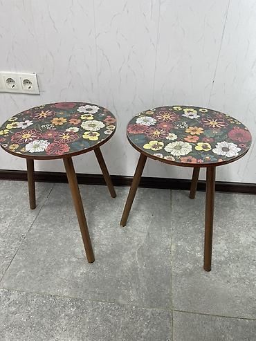 Пара круглых журнальных столиков с цветочным принтом