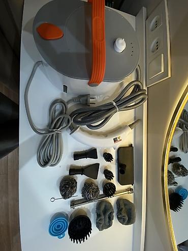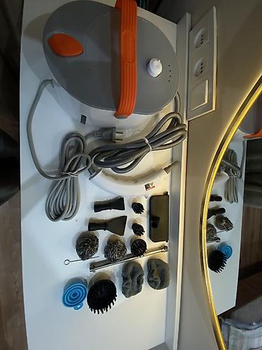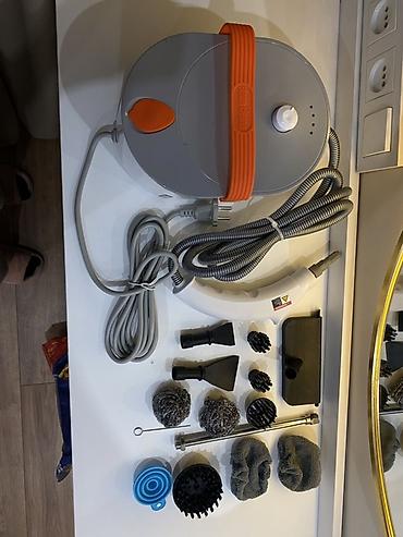 Компактный парогенератор для быстрой и безопасной уборки без химии. Корпус с верхней ручкой-ремнем для переноски, индикаторами и заливной пробкой. Гибкий паровой шланг и сетевой кабель.