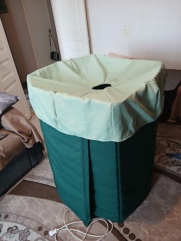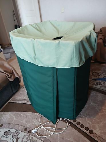 - Внутри размещается парогенератор (подключение через кабель), пар подаётся в объём кабины для прогрева всего тела.