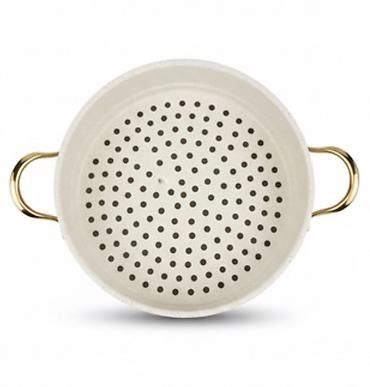 - Материал: многослойный металл с антипригарным покрытием (корпус с точечной текстурой), перфорированные вставки для пара.
