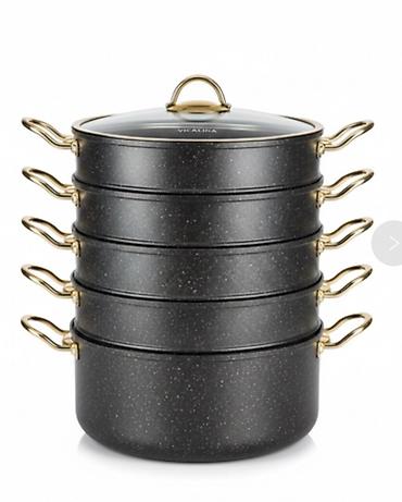 Многоярусная пароварка VICALINA VL-208 - Диаметр: 34 см - Комплектация: базовая кастрюля + 4 паровых яруса + стеклянная крышка с пароотводом - Объем: нижняя кастрюля 12,0 л; каждый ярус 6,2 л (x4)...