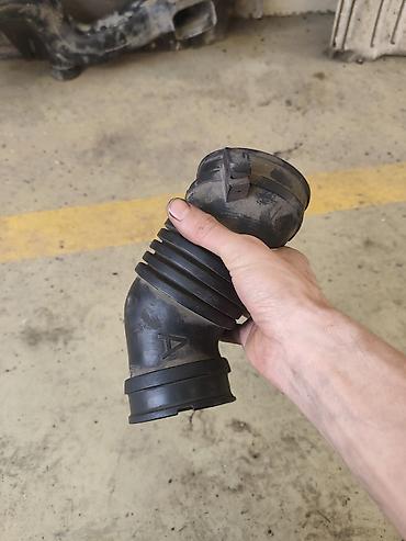- Гофрированный резиновый патрубок впуска с угловым коленом.